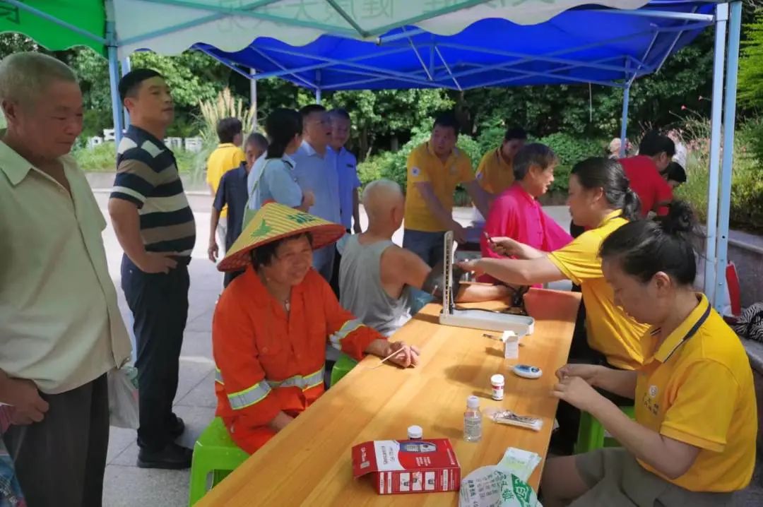 揭牌仪式后,缙云县老百姓医药连锁有限公司药师志愿队在朝晖公园开展免费测血糖血压、安全用药科普宣传、药品回收等形式多样的现场药事服务活动,共200多名社区居民参加。